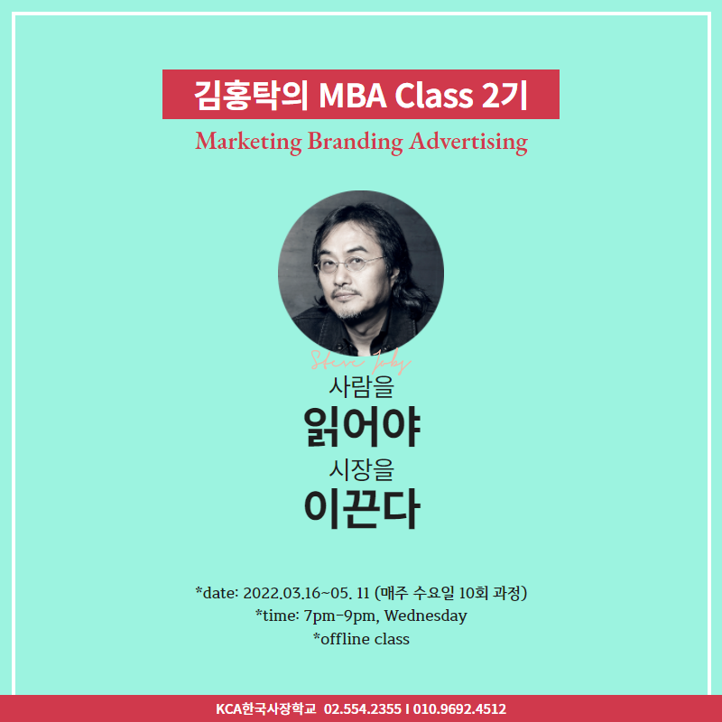 김홍탁의 MBA 클래스 홍보 이미지입니다. 많은 학생들에게 영감을 주고 있습니다.