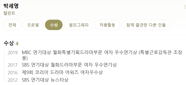 박세영은 그녀의 뛰어난 연기력으로 여러 차례 수상 경력을 쌓아왔습니다. 2019년 MBC 연기대상에서 월화·특별기획 드라마부문 여자 최우수상을 수상하였으며, 이는 그녀의 연기 경력을 더욱 빛나게 해주는 성과입니다. 그녀는 앞으로도 더 많은 작품에서 뛰어난 연기를 보여줄 것으로 기대됩니다.