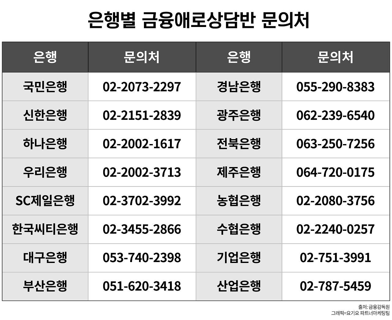 | 국민은행 | 1588-9999 |