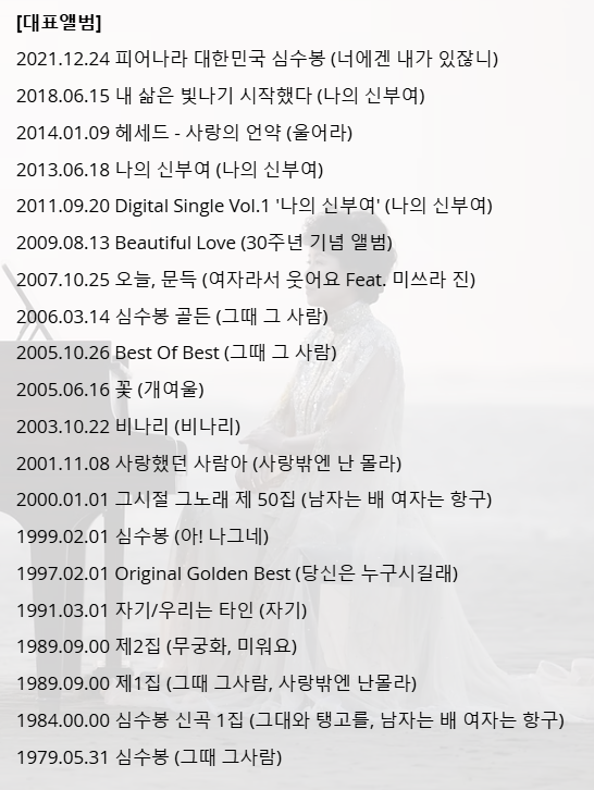 심수봉의 프로필과 삶은 한국 음악사에서 중요한 위치를 차지하고 있으며, 앞으로도 그녀의 음악과 영향력은 계속해서 이어질 것입니다. 그럼 심수봉에 대한 소개는 여기까지 하겠습니다.