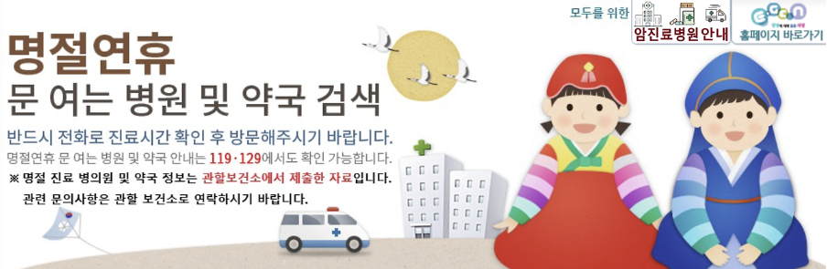 4. 지방보건소 휴일 동안 개원하는 병원과 진료소 목록이 최신 상태로 업데이트되어 있으므로 가장 가까운 보건소(보건소)를 방문하거나 전화하세요.