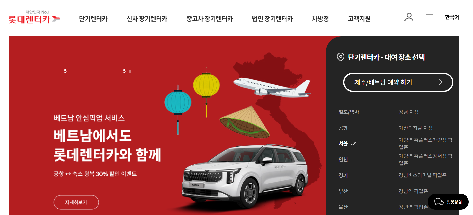 | 롯데렌터카 | 전국 지점, 대기업 안정성 | 가능 | CDW 기본, 멤버십 추가 할인 | 예약하기 |
